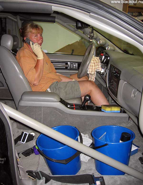 Agneta working hard to freshen up everything in the interior. The car has never